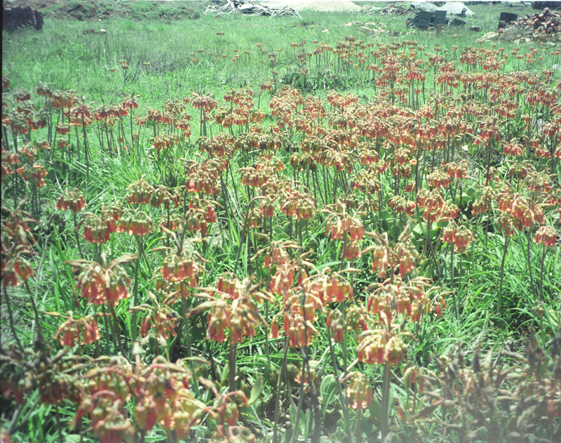 - Incredible density of Cotyledon orbiculata. Those outside the fence and on the grassy side are much less dense. Photo taken through diamond-mesh netted fence.