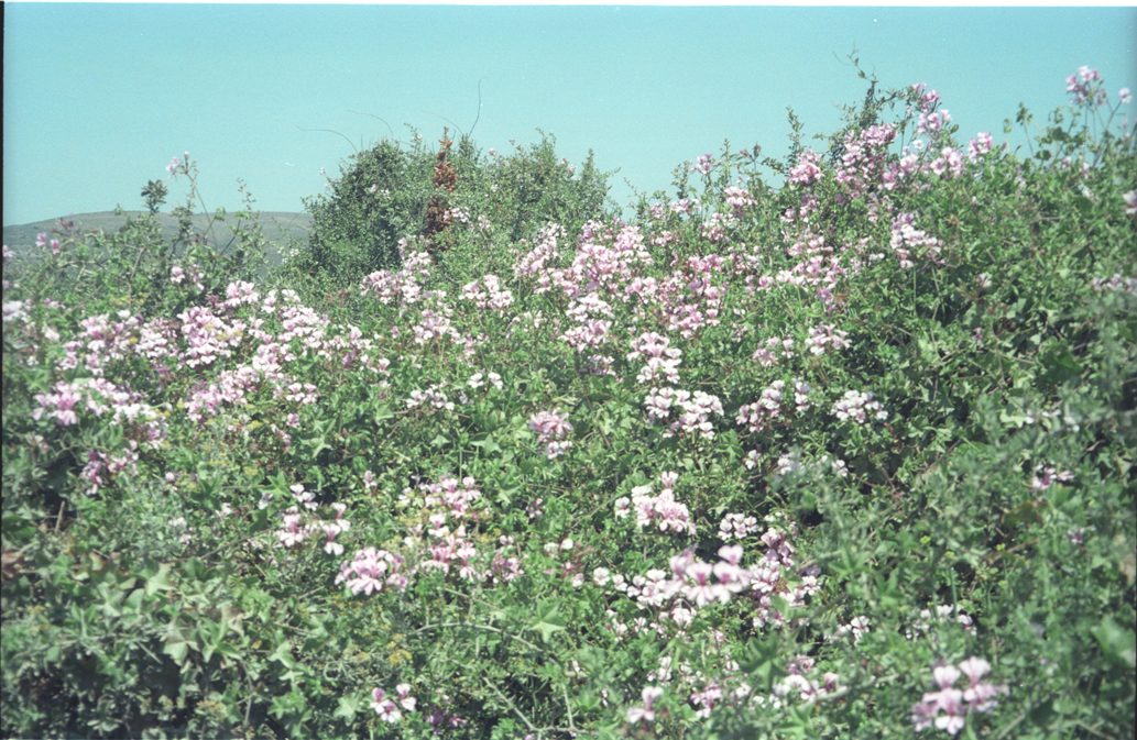 - Good spread of Pelargonium peltatum creeping over a roadside bush. Others in the vicinity.