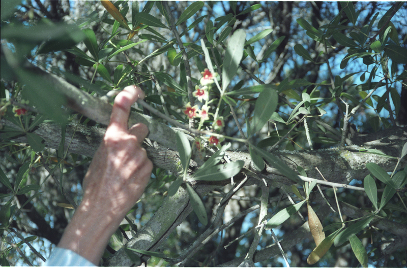 - Flowering of Sterculia alexandri with the red/brown centres.