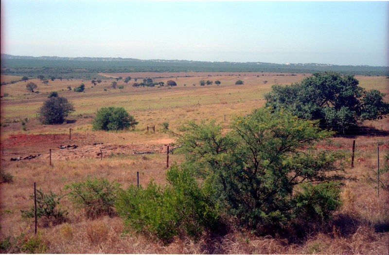 - Congo's Kraal farm (kwaChungwa), the Great Place of Gqunukhwebe chief Chungwa in late 18th century lies in the bushveld towards the left of the picture. The open foreground has been cleared of its dense bush in recent years. View overlooking country between Nanaga and the coast, Alexandria district, with bushy dune-hills in the distance.
