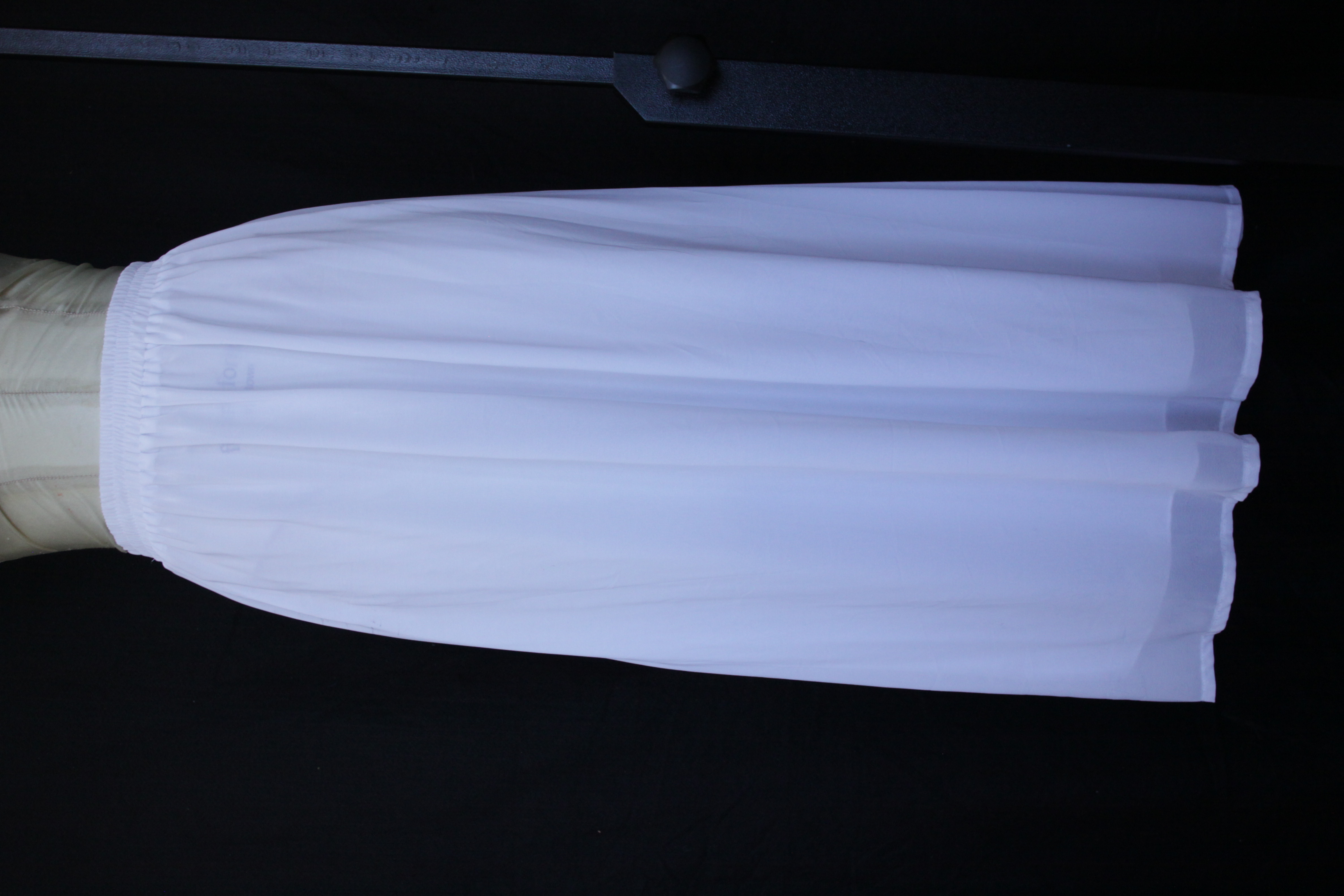 - White Georgette Maxi Skirt with Elastic Waist. The skirt made with white Georgette and is lined with a white stretch silk linning. The length of the skirt is 98cm and is size 10 with an elastic waist.
