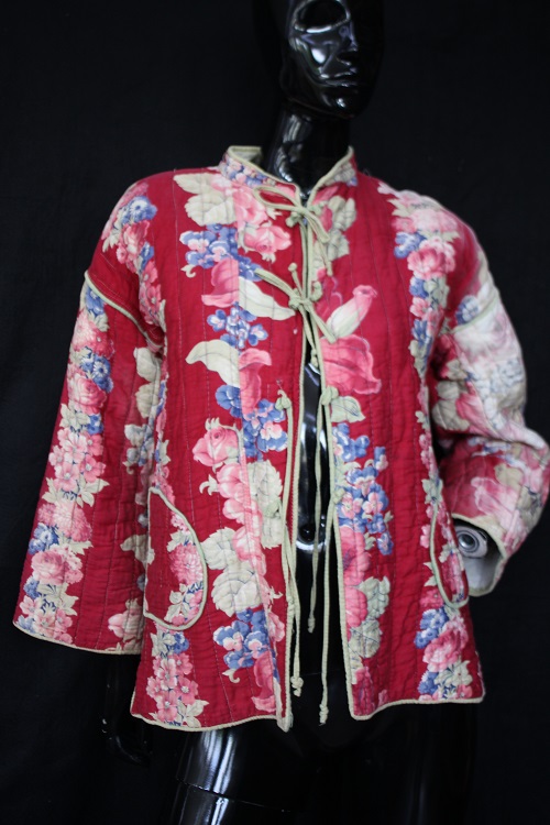- Red Chinese Jacket, also known as a tang suit, is made with a cotton-blend fabric and is lined with linen. The jacket is quilted vertically with half circular pockets and includes a Chinese collar and tie-up strings as a closure. The tang suit measures 66cm in length and has a shoulder width of 49cm. The jacket is suitable for sizes Small. Did you know? The Tang suit can be traced back to the Qing Dynasty in Northeastern China, specifically in Manchuria. The garment is unisex and is worn to celebrate Chinese Traditions. Condition: Good with no visible staining or tears, This is an item from the Post-Graduate Wall, meaning item has been bought or made for a Post-Graduate production. The item cannot be destroyed or adapted as the costume is meant to be preserved following the project.