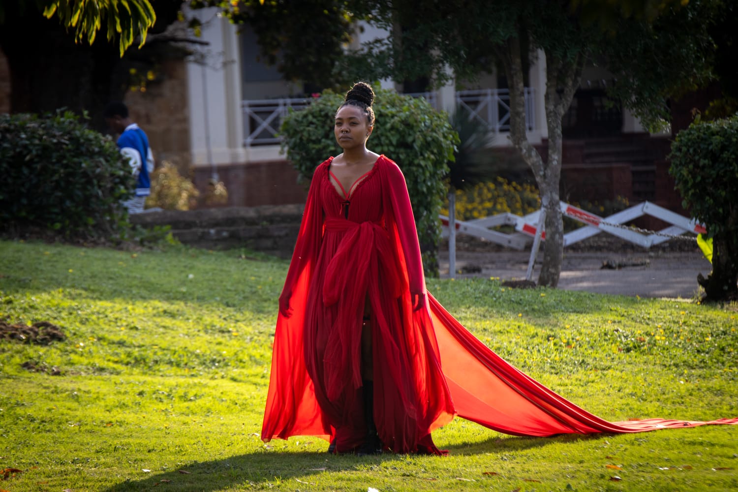 - The red lingerie dress piece was designed for the production Tksss Tkss Tkss directed by Lethabo Makweya in 2024. The costume features various pieces that attach to a red lingerie body suit through Velcro. The piece includes 13 pieces that are made with stretch mesh and the body suit consists of a blend of lace power mesh, tulle and Velcro and includes a garter ring and is suitable for sizes small. Used in the production Tkss Tkss Tkss directed by Lethabo Makweya, Condition: Good with no visible staining or tears, This is an item from the Post-Graduate Wall, meaning item has been bought or made for a Post-Graduate production. The item cannot be destroyed or adapted as the costume is meant to be preserved following the project.