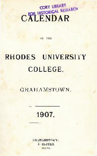 The collection of Rhodes University Calendars covering the period from 1904 to 1951 provides an invaluable, continuous record of the institution's formative years. This period marks the University's development from its founding as Rhodes University College (RUC) in 1904, through its time as a constituent college of the University of South Africa (from 1918), up to its inauguration as an independent Rhodes University in 1951. -