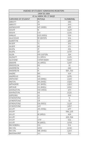 Rhodes University College - Students Admission Registers Index (1904-1951)