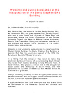 Welcome and public declaration at the inauguration of the Bantu Stephen Biko Building