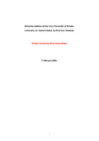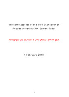 Welcome address of the Vice-Chancellor of Rhodes University, Dr. Saleem Badat, to first-year students