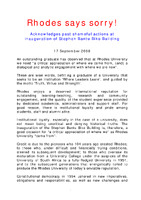 Rhodes says sorry! : acknowledges past shameful actions at inauguration of Stephen Bantu Biko Building