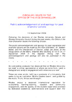 Public acknowledgement of and apology for past shameful actions : circular issued by the Office of the Vice-Chancellor