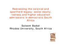 Redressing the colonial/apartheid legacy: social equity, redress and higher education admissions in democratic South Africa