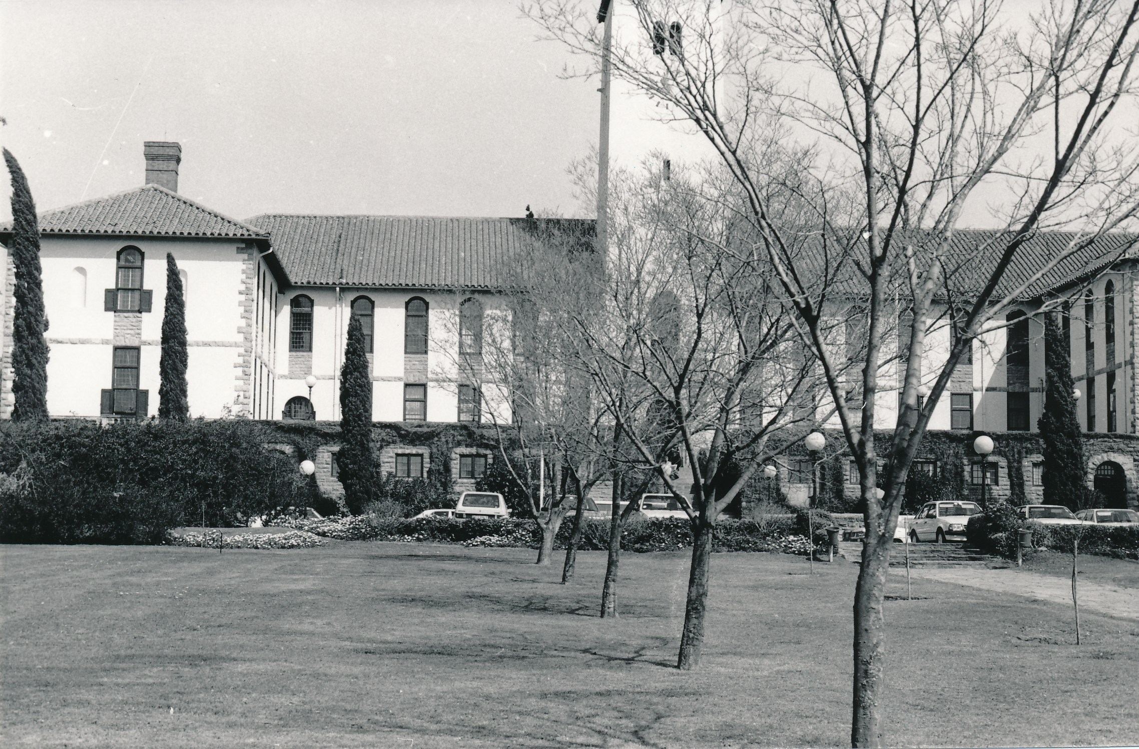 Unattributed, “Main administrative block from the Drostdy lawns”, Rhodes University History Archive, accessed 29 December 2025, https://digitalarchives.ru.ac.za/s/ruha/item/13590