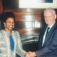 Unattributed, “Cheryl Carolus with David Woods”, Rhodes University History Archive, accessed 29 December 2025, https://digitalarchives.ru.ac.za/s/ruha/item/13679