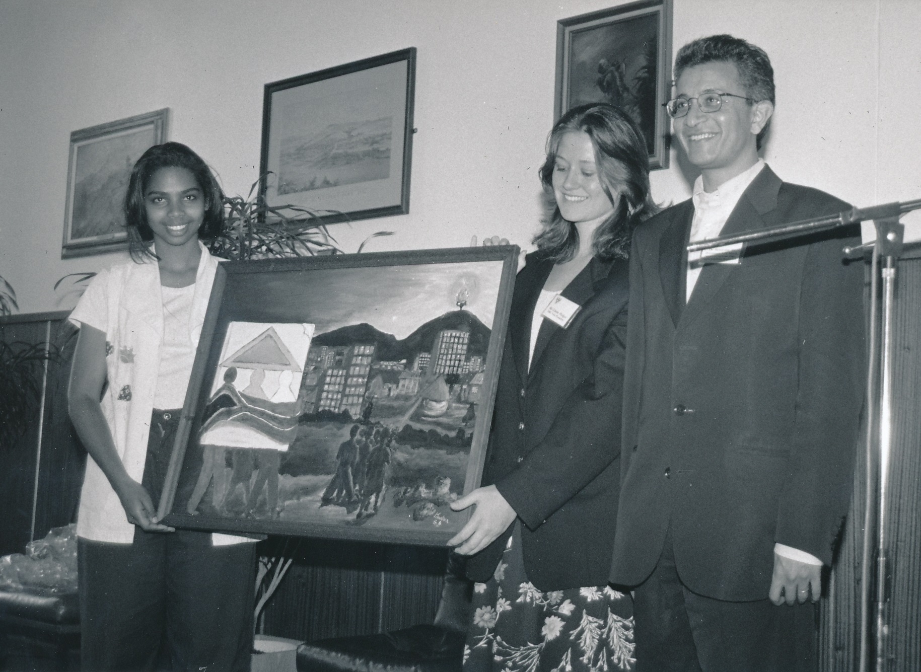 Unattributed, “Valli Moosa - presentation of constitution painting”, Rhodes University History Archive, accessed 28 December 2025, https://digitalarchives.ru.ac.za/s/ruha/item/13699