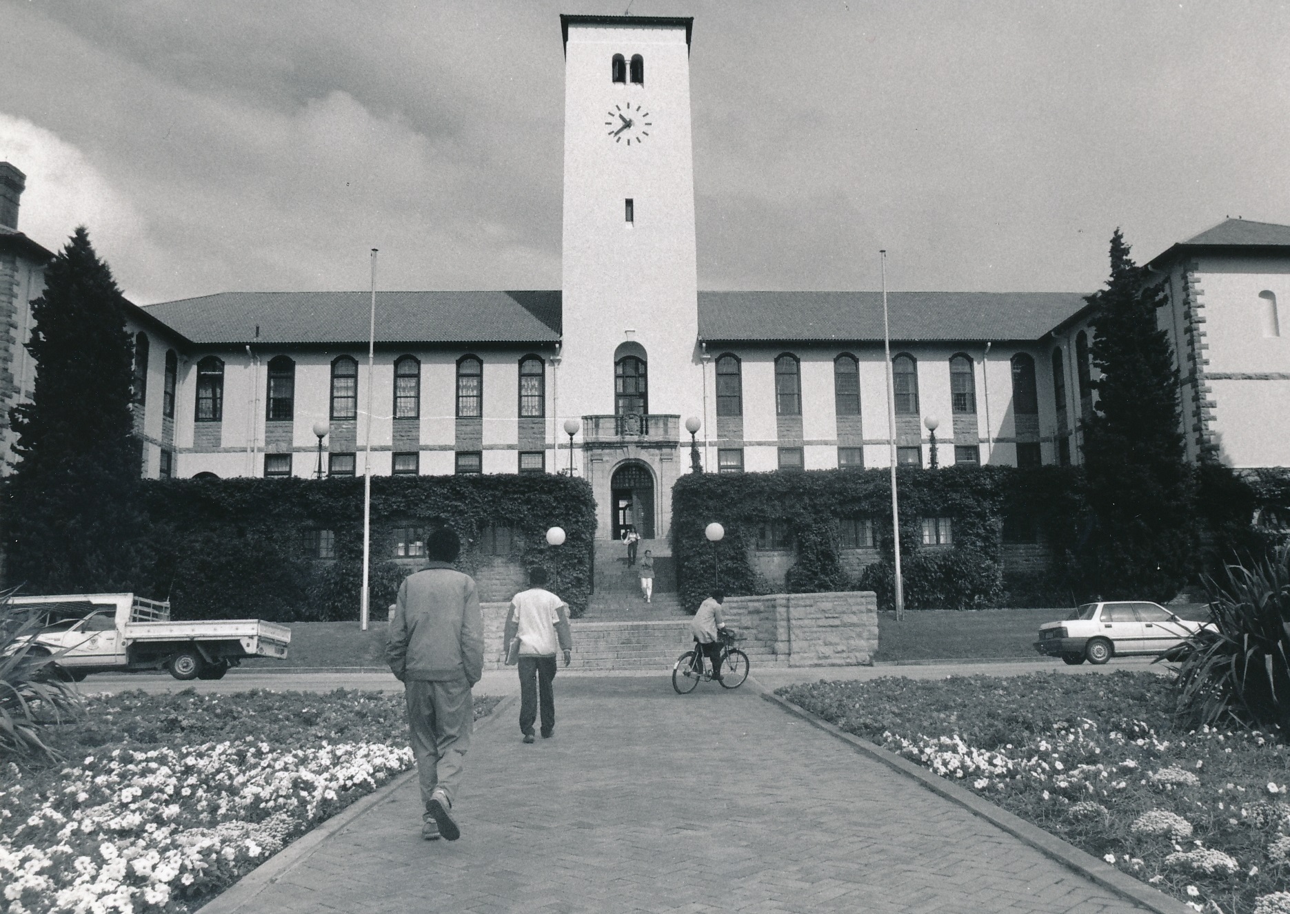 Unattributed, “Rhodes University - People walking towards the Clock Tower”, Rhodes University History Archive, accessed 29 December 2025, https://digitalarchives.ru.ac.za/s/ruha/item/13988