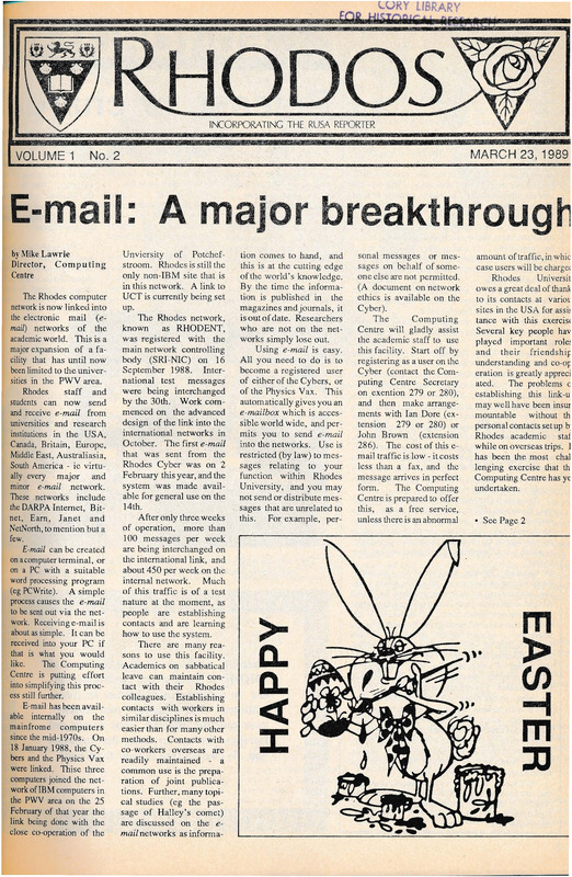 - The Rhodos newsletter carries news and information about events, awards, projects and developments both on and off campus. Ten editions of Rhodos are printed throughout the academic year for distribution among staff members of the University