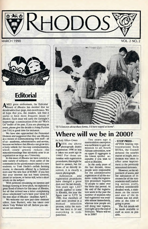 - The Rhodos newsletter carries news and information about events, awards, projects and developments both on and off campus. Ten editions of Rhodos are printed throughout the academic year for distribution among staff members of the University