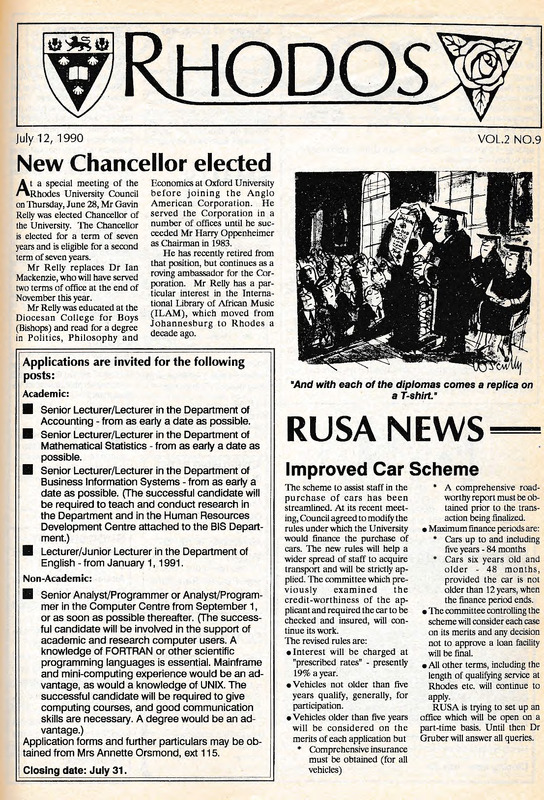 - The Rhodos newsletter carries news and information about events, awards, projects and developments both on and off campus. Ten editions of Rhodos are printed throughout the academic year for distribution among staff members of the University