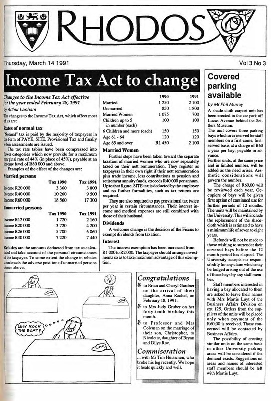 - The Rhodos newsletter carries news and information about events, awards, projects and developments both on and off campus. Ten editions of Rhodos are printed throughout the academic year for distribution among staff members of the University