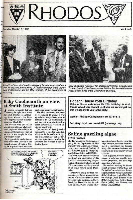 - The Rhodos newsletter carries news and information about events, awards, projects and developments both on and off campus. Ten editions of Rhodos are printed throughout the academic year for distribution among staff members of the University
