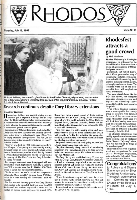 - Original held at Cory Library for Humanities Research, situated at Rhodes University