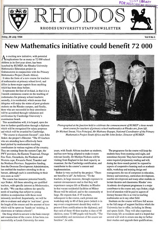 - The Rhodos newsletter carries news and information about events, awards, projects and developments both on and off campus. Ten editions of Rhodos are printed throughout the academic year for distribution among staff members of the University