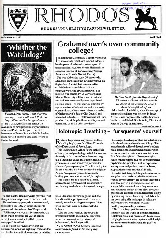 - The Rhodos newsletter carries news and information about events, awards, projects and developments both on and off campus. Ten editions of Rhodos are printed throughout the academic year for distribution among staff members of the University