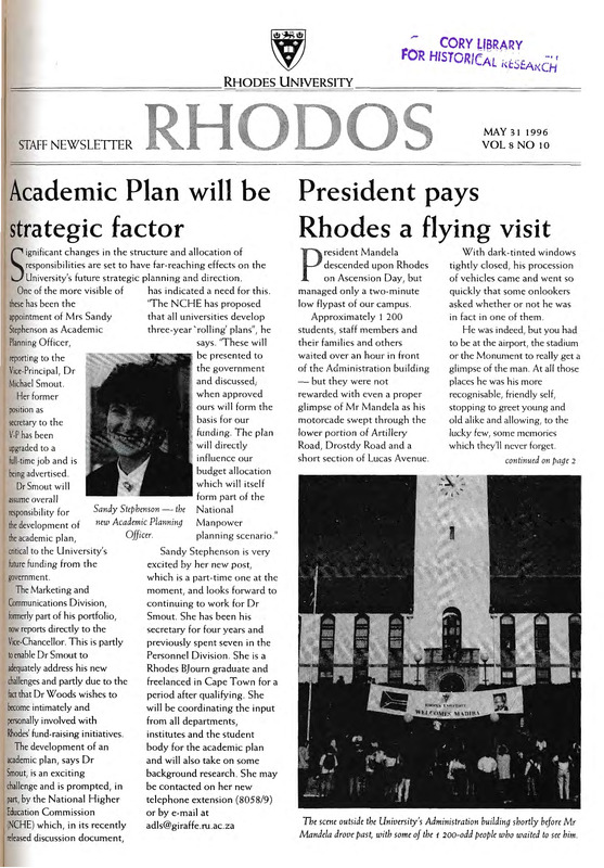 - The Rhodos newsletter carries news and information about events, awards, projects and developments both on and off campus. Ten editions of Rhodos are printed throughout the academic year for distribution among staff members of the University