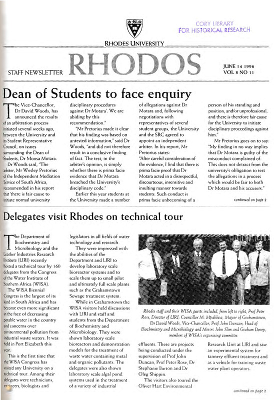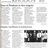 - The Rhodos newsletter carries news and information about events, awards, projects and developments both on and off campus. Ten editions of Rhodos are printed throughout the academic year for distribution among staff members of the University