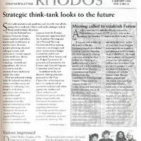 - The Rhodos newsletter carries news and information about events, awards, projects and developments both on and off campus. Ten editions of Rhodos are printed throughout the academic year for distribution among staff members of the University