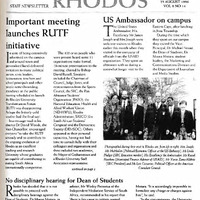 - The Rhodos newsletter carries news and information about events, awards, projects and developments both on and off campus. Ten editions of Rhodos are printed throughout the academic year for distribution among staff members of the University