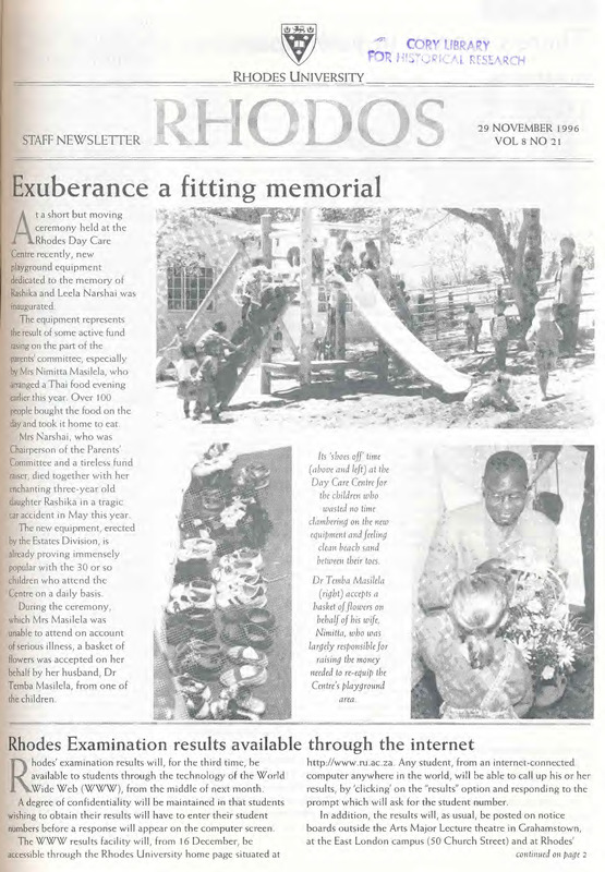 - The Rhodos newsletter carries news and information about events, awards, projects and developments both on and off campus. Ten editions of Rhodos are printed throughout the academic year for distribution among staff members of the University