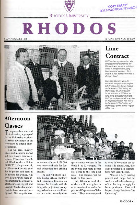 - The Rhodos newsletter carries news and information about events, awards, projects and developments both on and off campus. Ten editions of Rhodos are printed throughout the academic year for distribution among staff members of the University