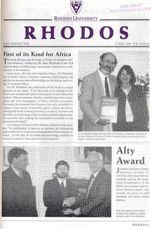 - The Rhodos newsletter carries news and information about events, awards, projects and developments both on and off campus. Ten editions of Rhodos are printed throughout the academic year for distribution among staff members of the University