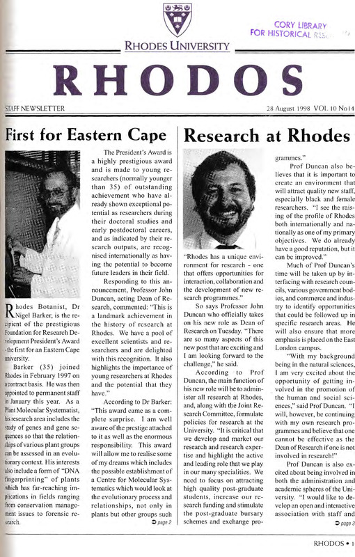 - The Rhodos newsletter carries news and information about events, awards, projects and developments both on and off campus. Ten editions of Rhodos are printed throughout the academic year for distribution among staff members of the University
