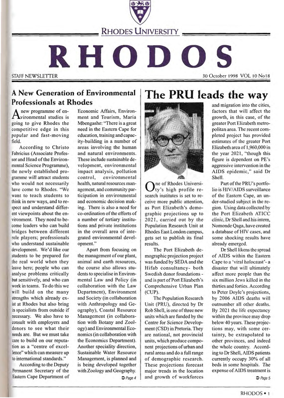 - The Rhodos newsletter carries news and information about events, awards, projects and developments both on and off campus. Ten editions of Rhodos are printed throughout the academic year for distribution among staff members of the University
