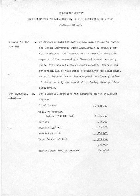 Henderson, Derek Scott, “Address to staff 1977”, Rhodes University History Archive, accessed 31 December 2025, https://digitalarchives.ru.ac.za/s/ruha/item/15257