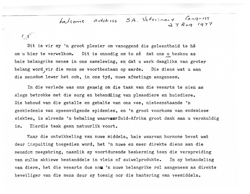 Henderson, Derek Scott, “Welcome address to S.A. Veterinary Congress, 1977”, Rhodes University History Archive, accessed 31 December 2025, https://digitalarchives.ru.ac.za/s/ruha/item/15269
