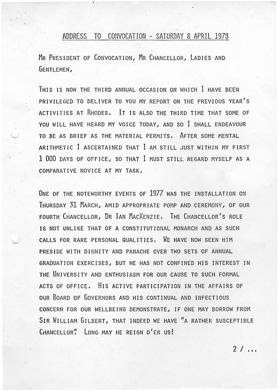 Henderson, Derek Scott, “Address to Convocation 1978”, Rhodes University History Archive, accessed 31 December 2025, https://digitalarchives.ru.ac.za/s/ruha/item/15289