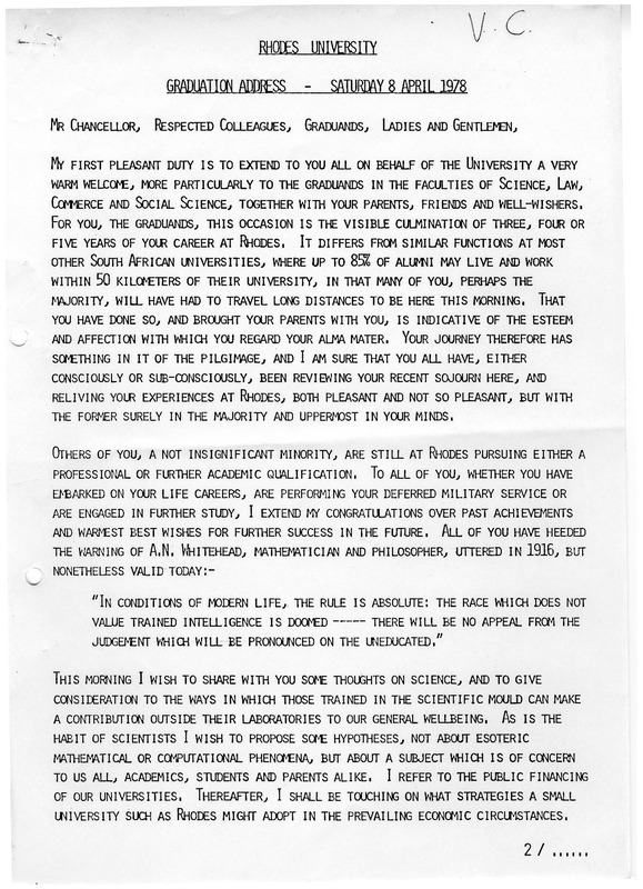 Henderson, Derek Scott, “Rhodes University 1978 Graduation address”, Rhodes University History Archive, accessed 31 December 2025, https://digitalarchives.ru.ac.za/s/ruha/item/15291