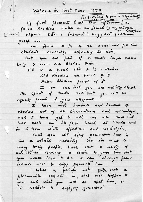 Henderson, Derek Scott, “Welcome to first years 1978”, Rhodes University History Archive, accessed 31 December 2025, https://digitalarchives.ru.ac.za/s/ruha/item/15315