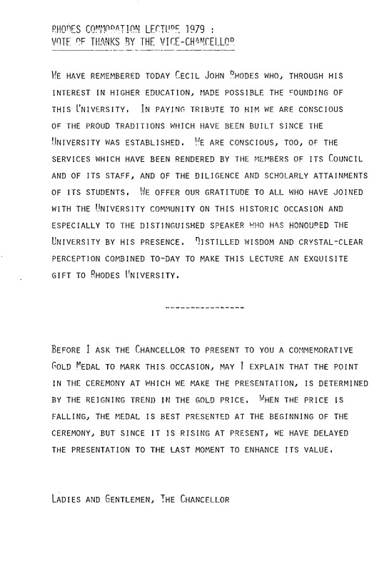 - Rhodes Commemoration Lecture 1979: vote of thanks