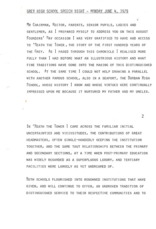 Henderson, Derek Scott, “Grey High School speech night 1979”, Rhodes University History Archive, accessed 31 December 2025, https://digitalarchives.ru.ac.za/s/ruha/item/15327