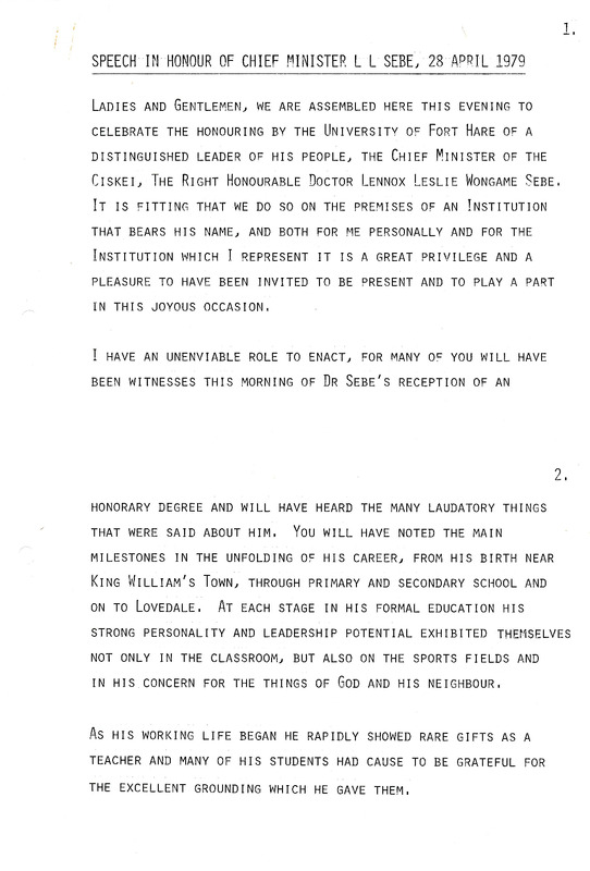 Henderson, Derek Scott, “Speech in honour of Chief Minister L.L.W. Sebe”, Rhodes University History Archive, accessed 31 December 2025, https://digitalarchives.ru.ac.za/s/ruha/item/15329