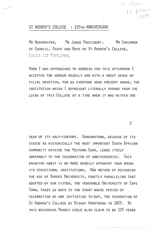 Henderson, Derek Scott, “St Andrew's college 125th annivessary”, Rhodes University History Archive, accessed 31 December 2025, https://digitalarchives.ru.ac.za/s/ruha/item/15365