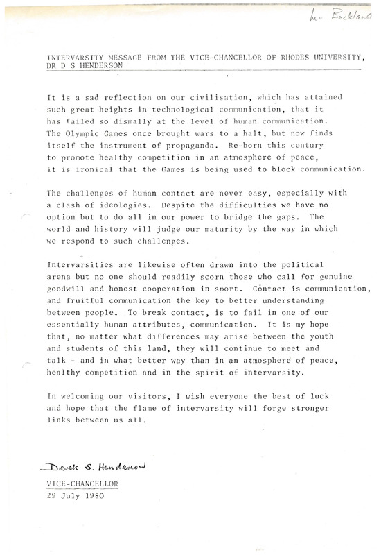 Henderson, Derek Scott, “Intervarsity message from the Vice-Chancellor of Rhodes University”, Rhodes University History Archive, accessed 31 December 2025, https://digitalarchives.ru.ac.za/s/ruha/item/15383