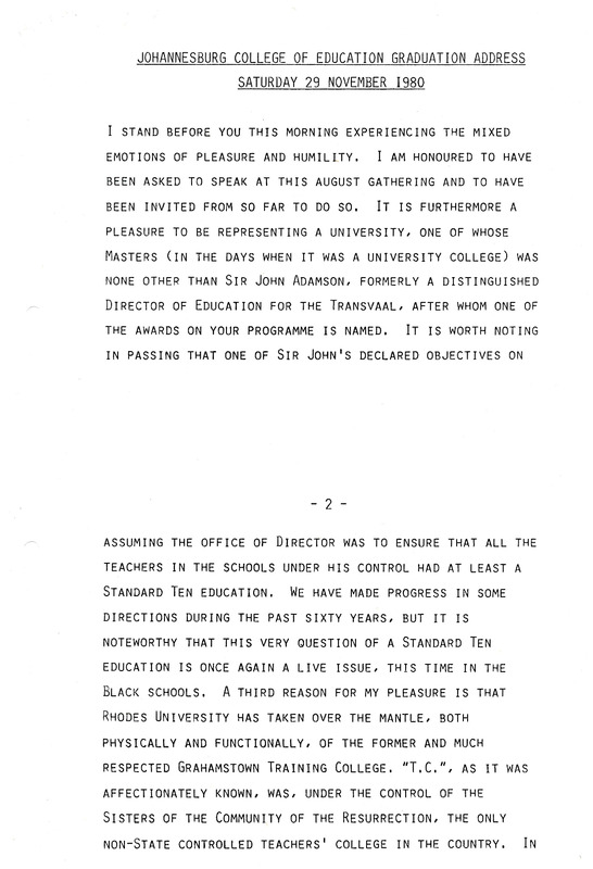 Henderson, Derek Scott, “Graduation address, Johannesburg College of Education 1980”, Rhodes University History Archive, accessed 31 December 2025, https://digitalarchives.ru.ac.za/s/ruha/item/15389
