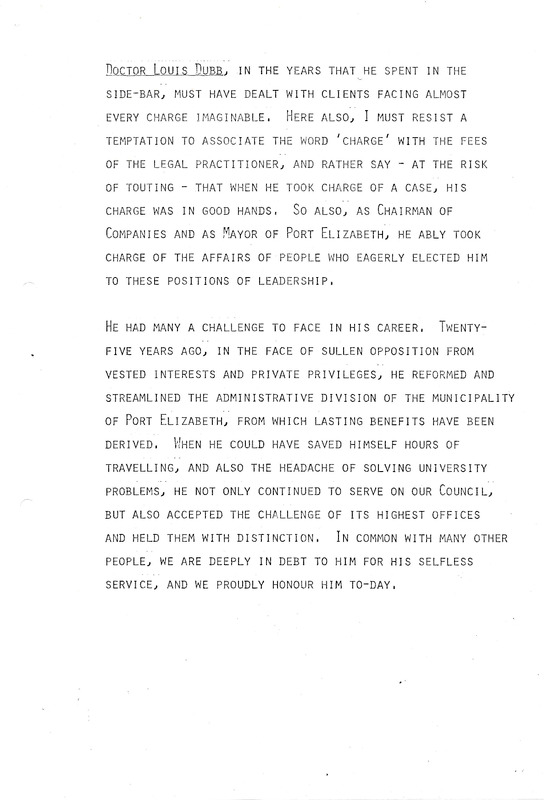 Henderson, Derek Scott, “Event in honour of Doctor Louis Dubb”, Rhodes University History Archive, accessed 31 December 2025, https://digitalarchives.ru.ac.za/s/ruha/item/15401