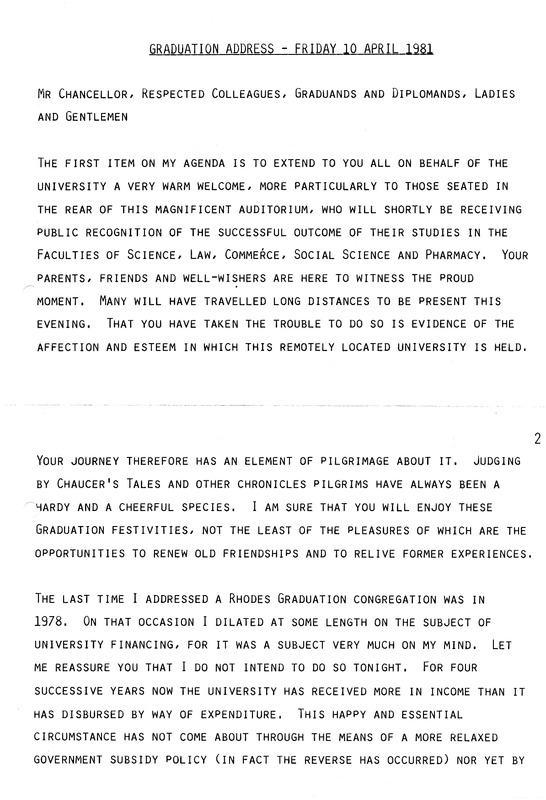 Henderson, Derek Scott, “Rhodes University 1981 Graduation Ceremonies Address”, Rhodes University History Archive, accessed 31 December 2025, https://digitalarchives.ru.ac.za/s/ruha/item/15415