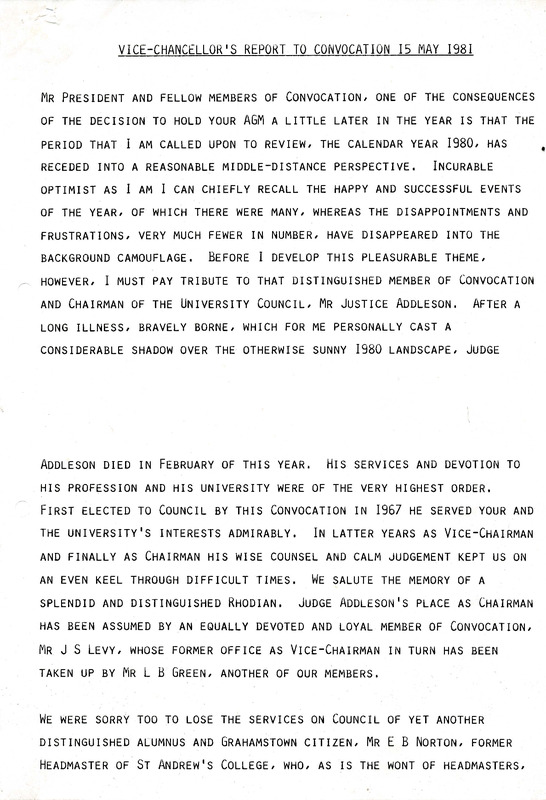 Henderson, Derek Scott, “Vice-Chancellor's report to Convocation”, Rhodes University History Archive, accessed 31 December 2025, https://digitalarchives.ru.ac.za/s/ruha/item/15419