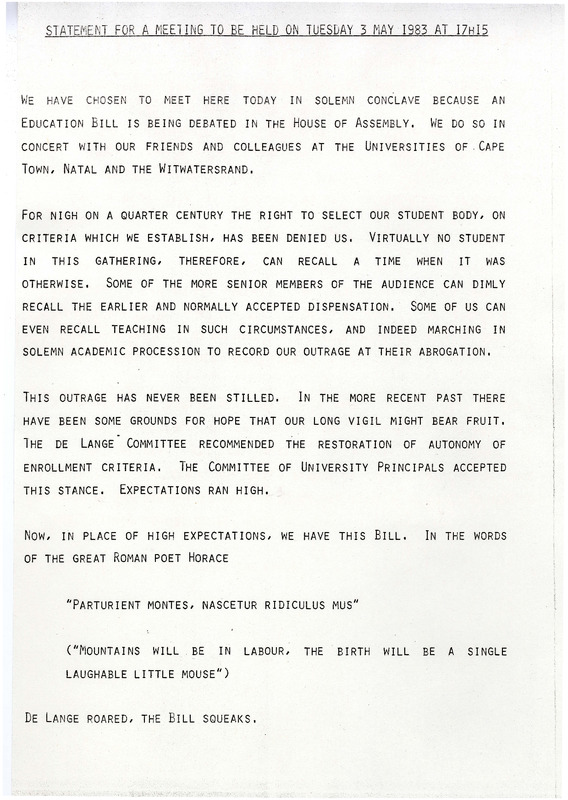 Henderson, Derek Scott, “Statement for a meeting to be held on Tuesday 3 May 1983”, Rhodes University History Archive, accessed 30 December 2025, https://digitalarchives.ru.ac.za/s/ruha/item/15465
